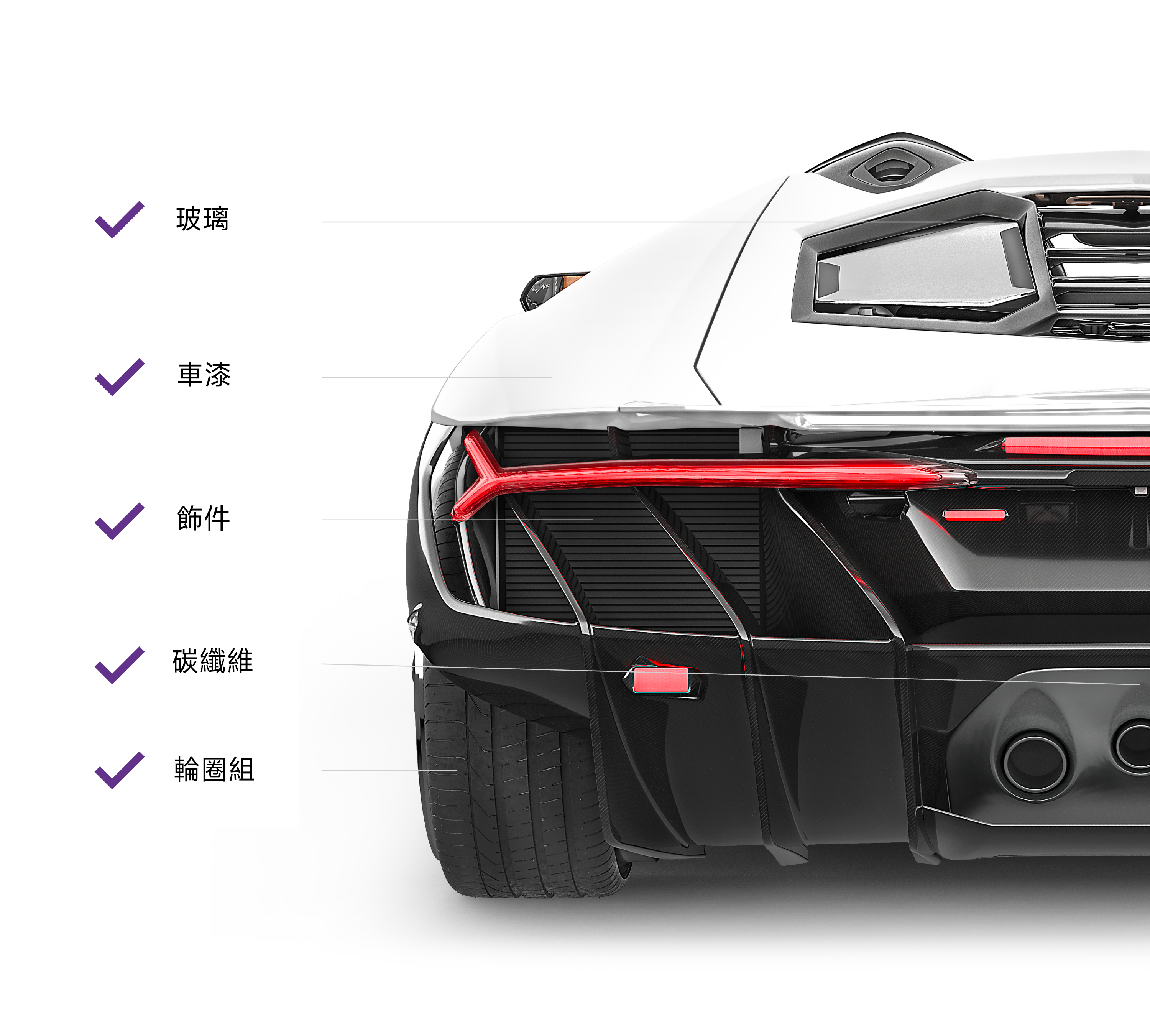 Wheel & Light Coat 是一款先進的單劑型鍍膜,專為有效保護處於最嚴苛環境下的部位而設計。煞車粉塵、鐵粉與道路髒污容易堆積在表面,再加上極高溫度會讓汙染物更牢固地附著於表面,因此輪圈需要 Wheel & Light Coat 所提供的毫不妥協的防護。